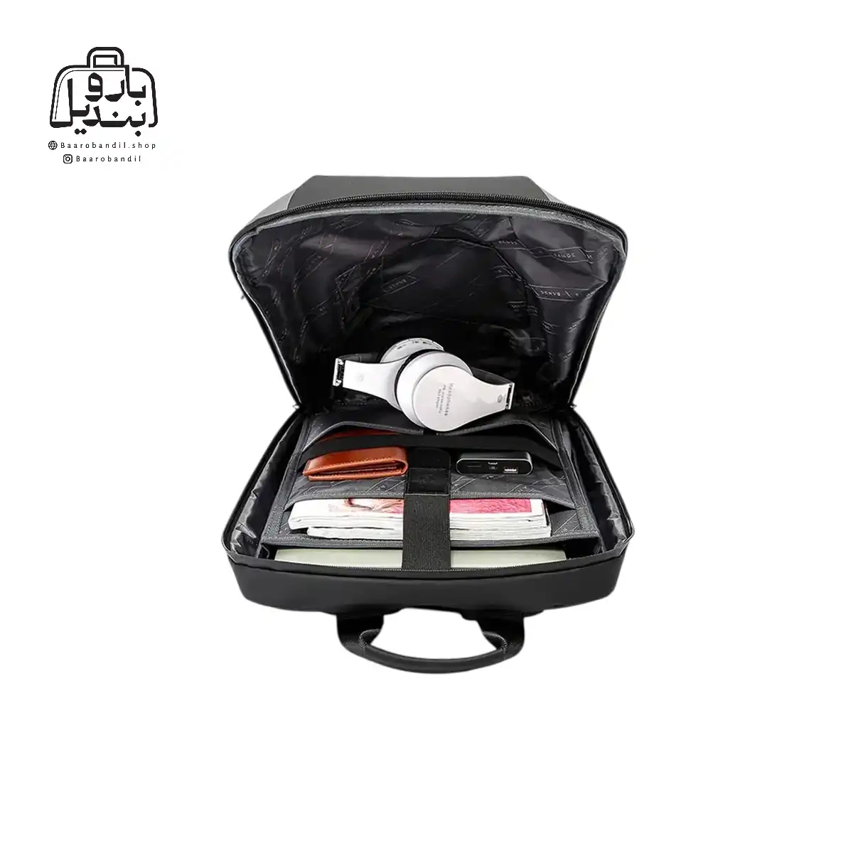 تقسیمبندیهای داخلی | فضای اصلی , دارای تفکیکهای داخلی مناسب , دارای زیپ و جیب داخلی , جای لپتاپ , جای تبلت , جای قمقمه |