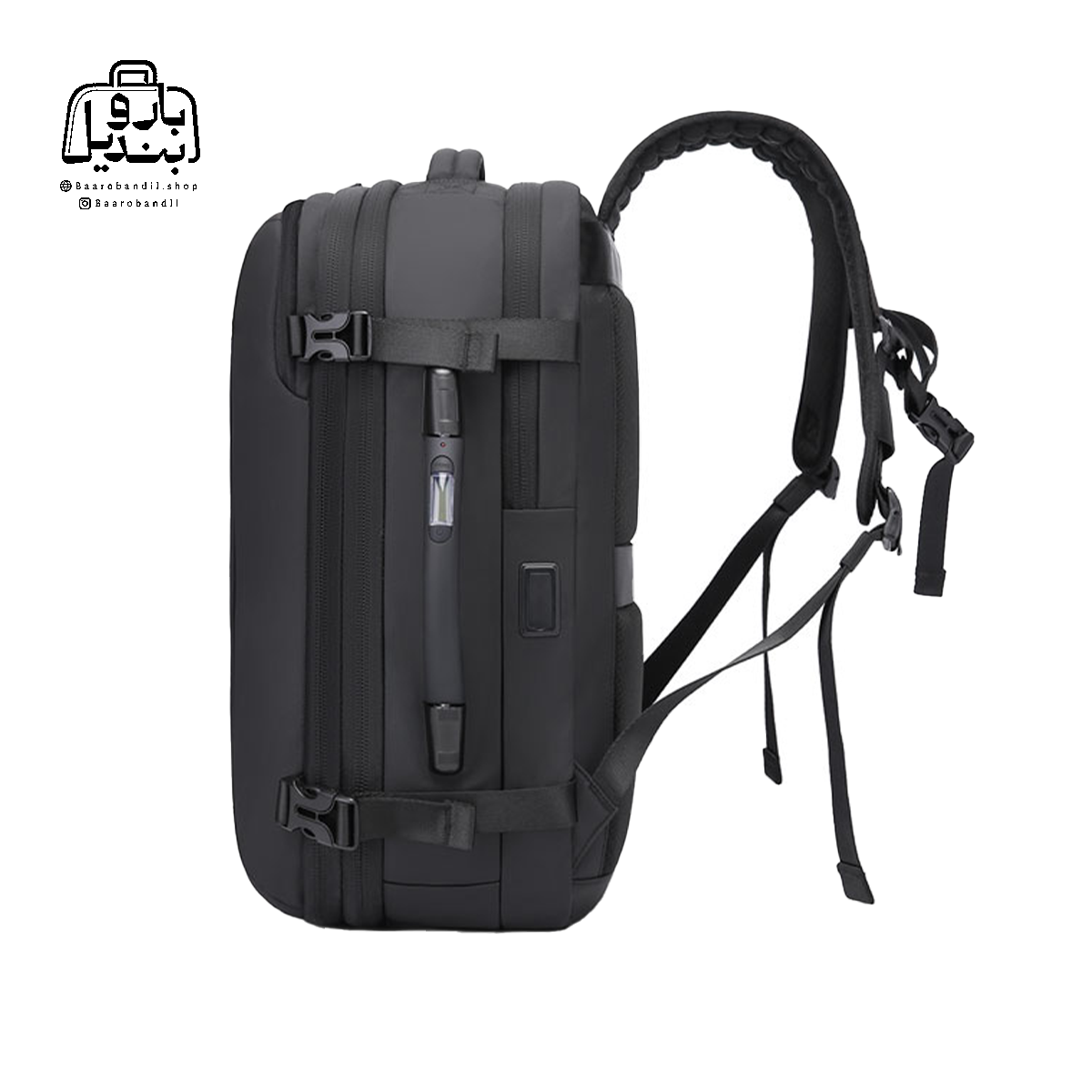 در بخش فناوری، این مدل چیزی کم ندارد. پورت USB و Type-C برای شارژ همزمان دستگاهها در نظر گرفته شده و سیستم قفل بینالمللی TSA-007 امنیت وسایل را حتی در سفرهای طولانی تضمین میکند. جالب اینکه با وجود بدنهٔ مستحکم، طراحی هوشمند آن اجازه میدهد تا حدود ۳ تا ۵ سانتیمتر افزایش حجم داشته باشد؛ ویژگیای که این کولهپشتی جادار را برای سفرهای کاری و استفادهٔ داخل کابین ایدهآل کرده است.