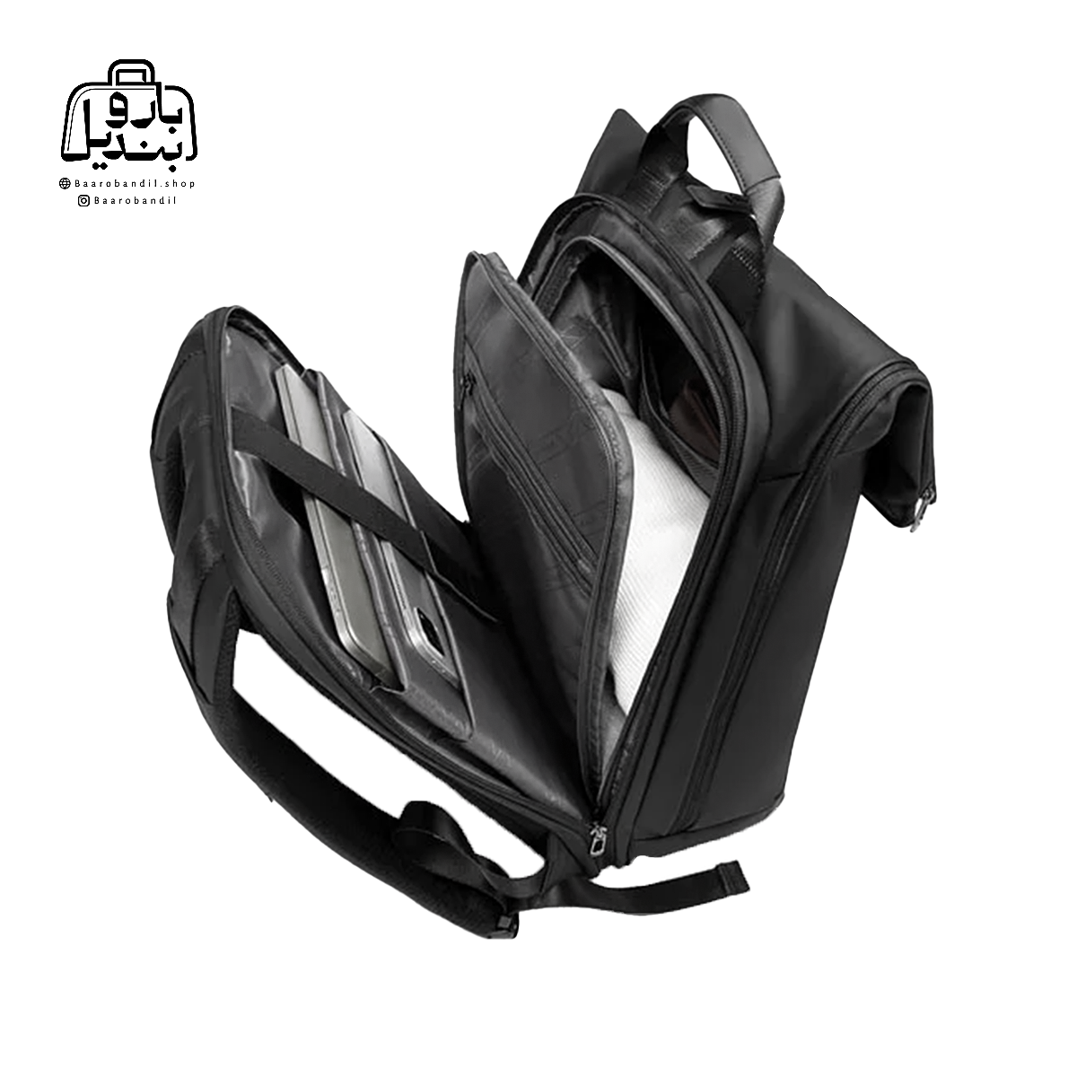 | تقسیمبندیهای داخلی | فضای اصلی , دارای تفکیکهای داخلی مناسب , دارای زیپ و جیب داخلی , تقسیمبندی مهارشونده با زیپ , جای لپتاپ , جای تبلت , جای قمقمه |