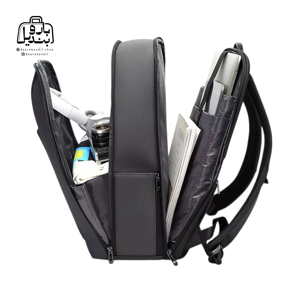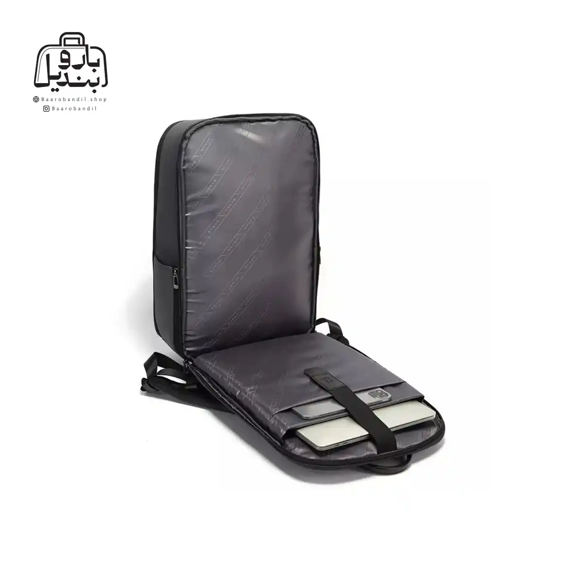 تقسیمبندیهای داخلی | فضای اصلی , دارای تفکیکهای داخلی مناسب , دارای زیپ و جیب داخلی , جای لپتاپ , جای تبلت , جای قمقمه |