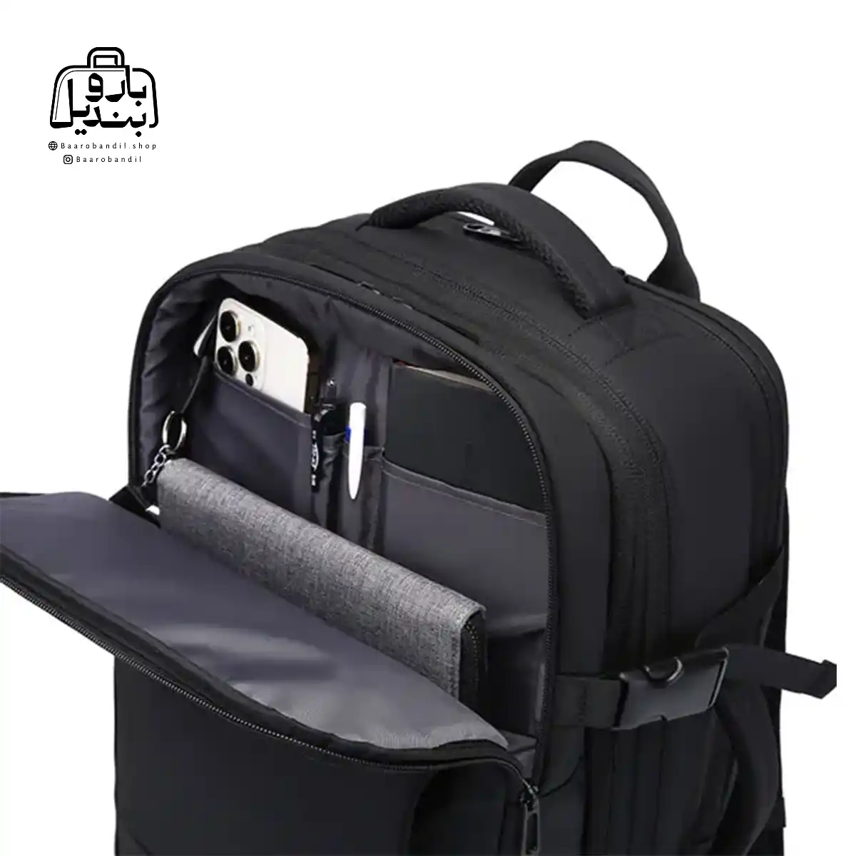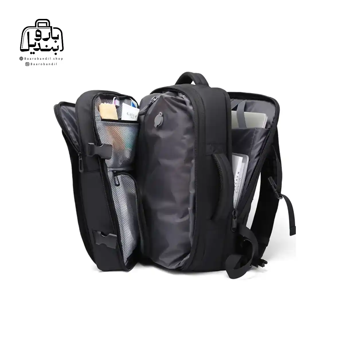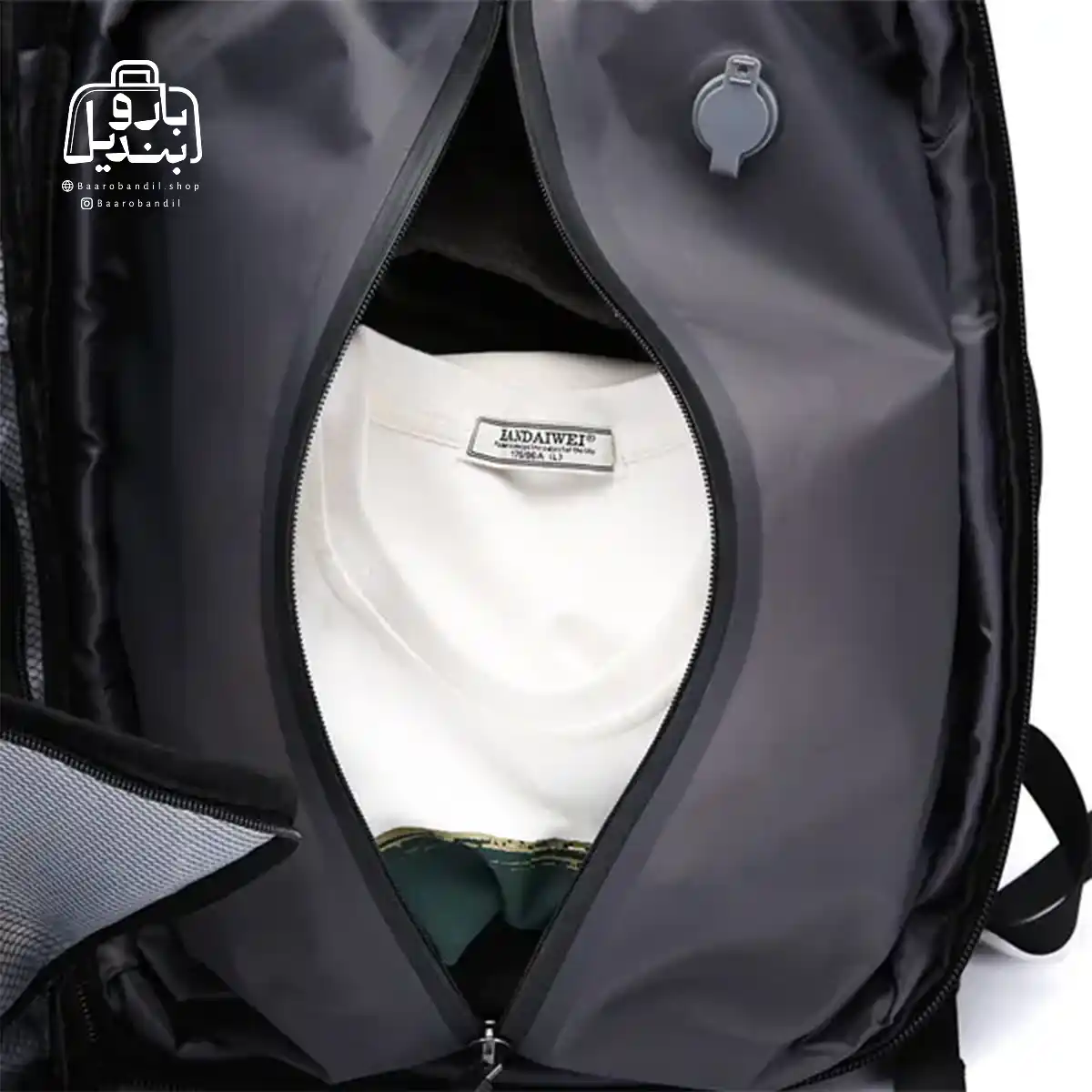 | تقسیمبندیهای داخلی | فضای اصلی , دارای تفکیکهای داخلی مناسب , دارای زیپ و جیب داخلی , محفظهٔ لباس خیس , محفظهٔ کفش , جای لپتاپ |