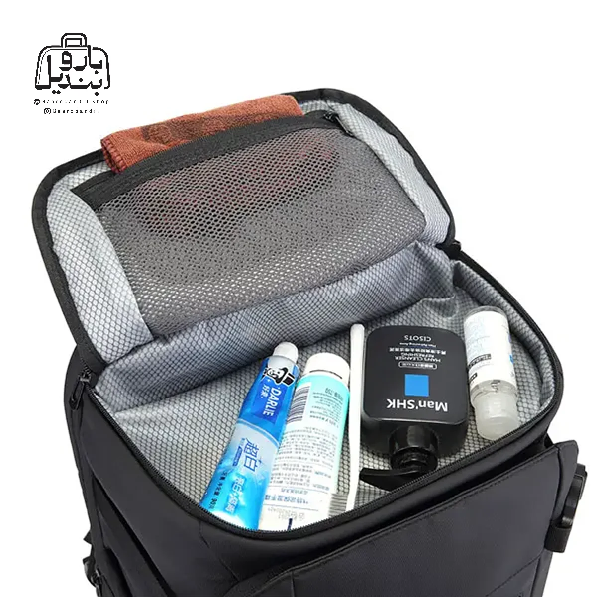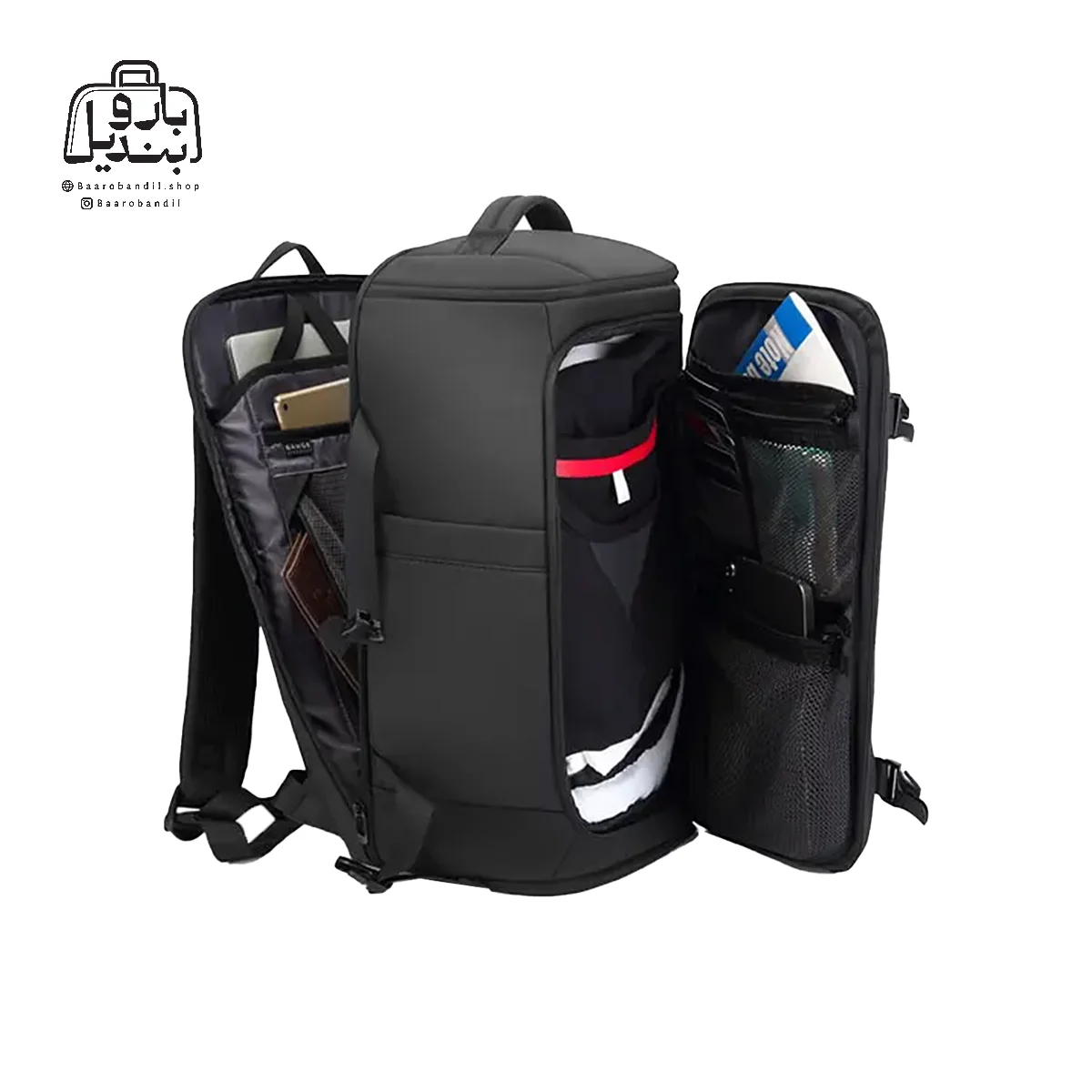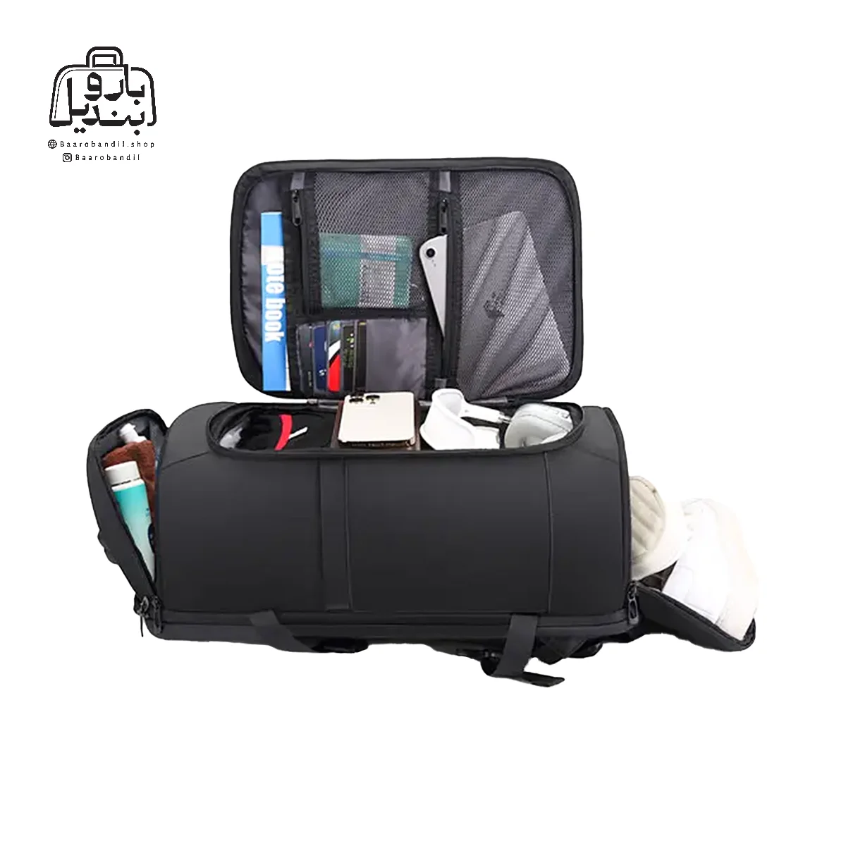 تقسیمبندیهای داخلی | فضای اصلی , دارای تفکیکهای داخلی مناسب , دارای زیپ و جیب داخلی , محفظهٔ لباس خیس , محفظهٔ کفش , جای قمقمه |