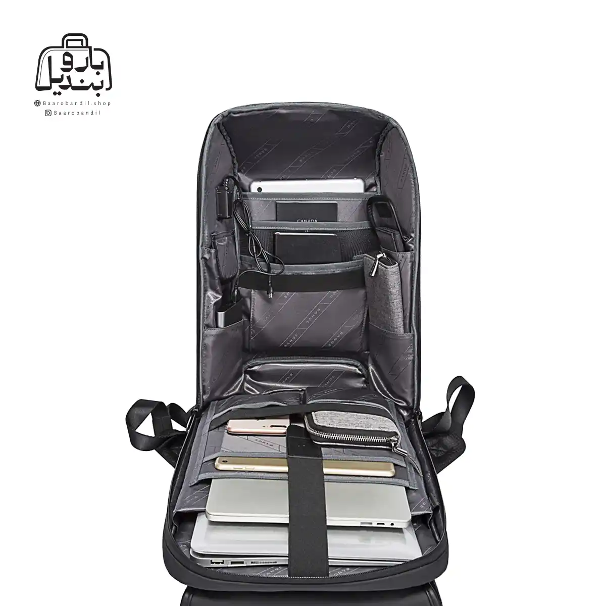 تقسیمبندیهای داخلی | فضای اصلی , دارای تفکیکهای داخلی مناسب , دارای زیپ و جیب داخلی , جای لپتاپ , جای تبلت , جای قمقمه |