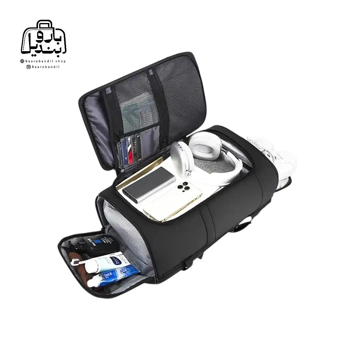 تقسیمبندیهای داخلی | فضای اصلی , دارای تفکیکهای داخلی مناسب , دارای زیپ و جیب داخلی , دارای دو محفظهٔ کوچک در جلوی چمدان , جای لپتاپ , جای تبلت , جای قمقمه |