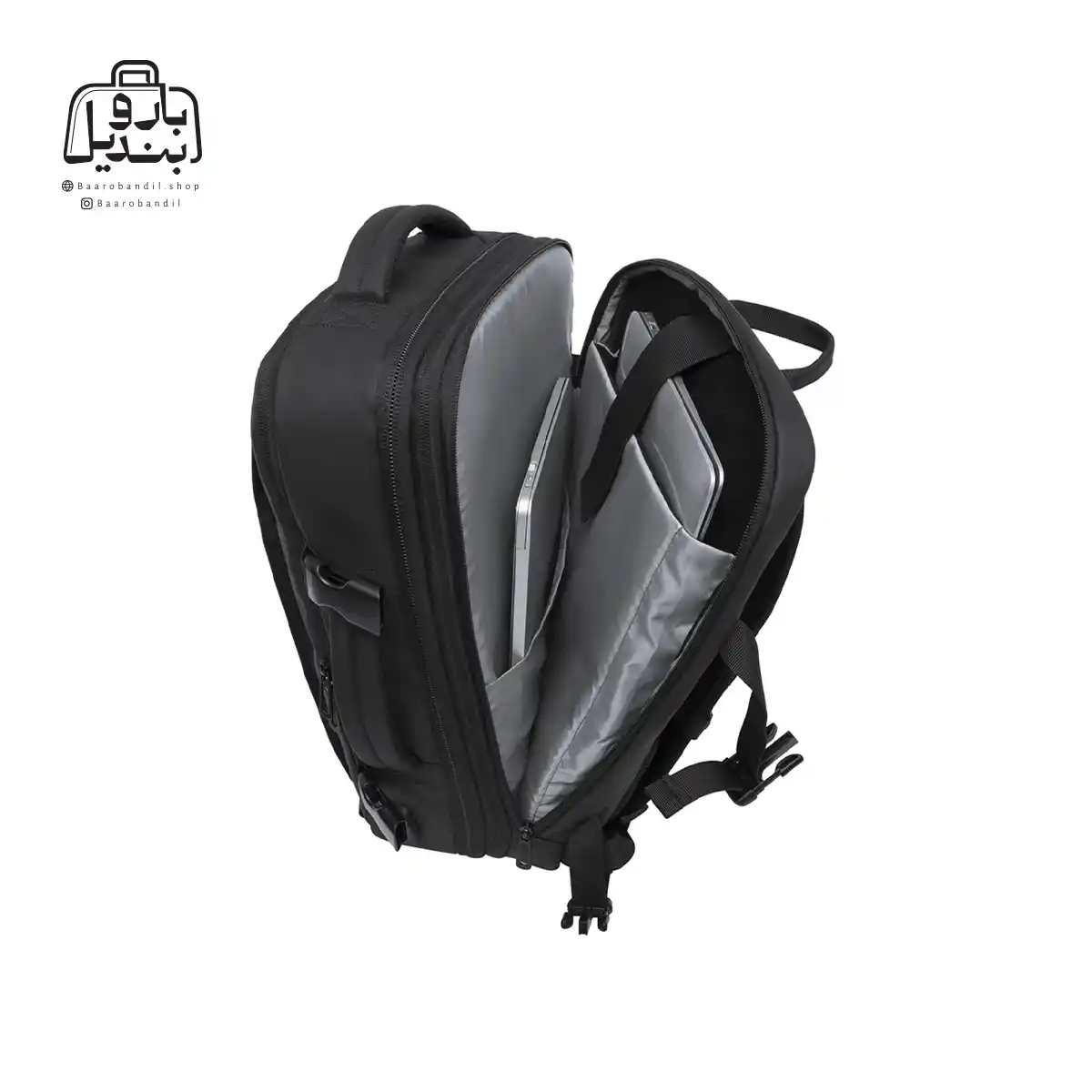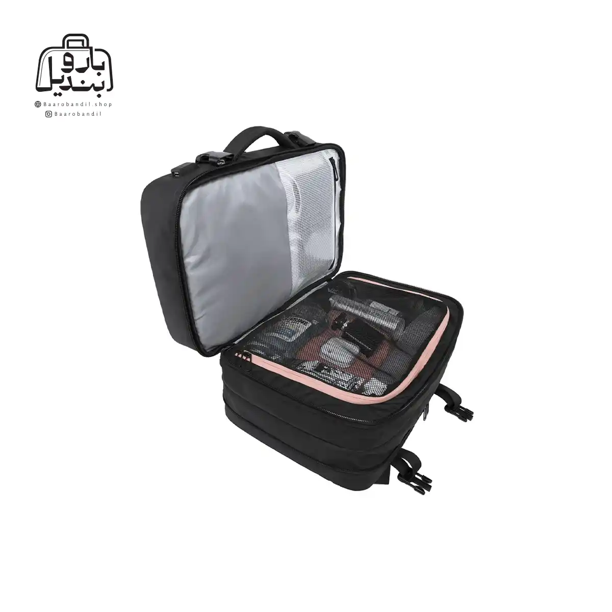 تقسیمبندیهای داخلی | فضای اصلی , دارای تفکیکهای داخلی مناسب , دارای زیپ و جیب داخلی , تقسیمبندی زیپدار توریشکل , محفظهٔ لباس خیس , جای لپتاپ , جای قمقمه |