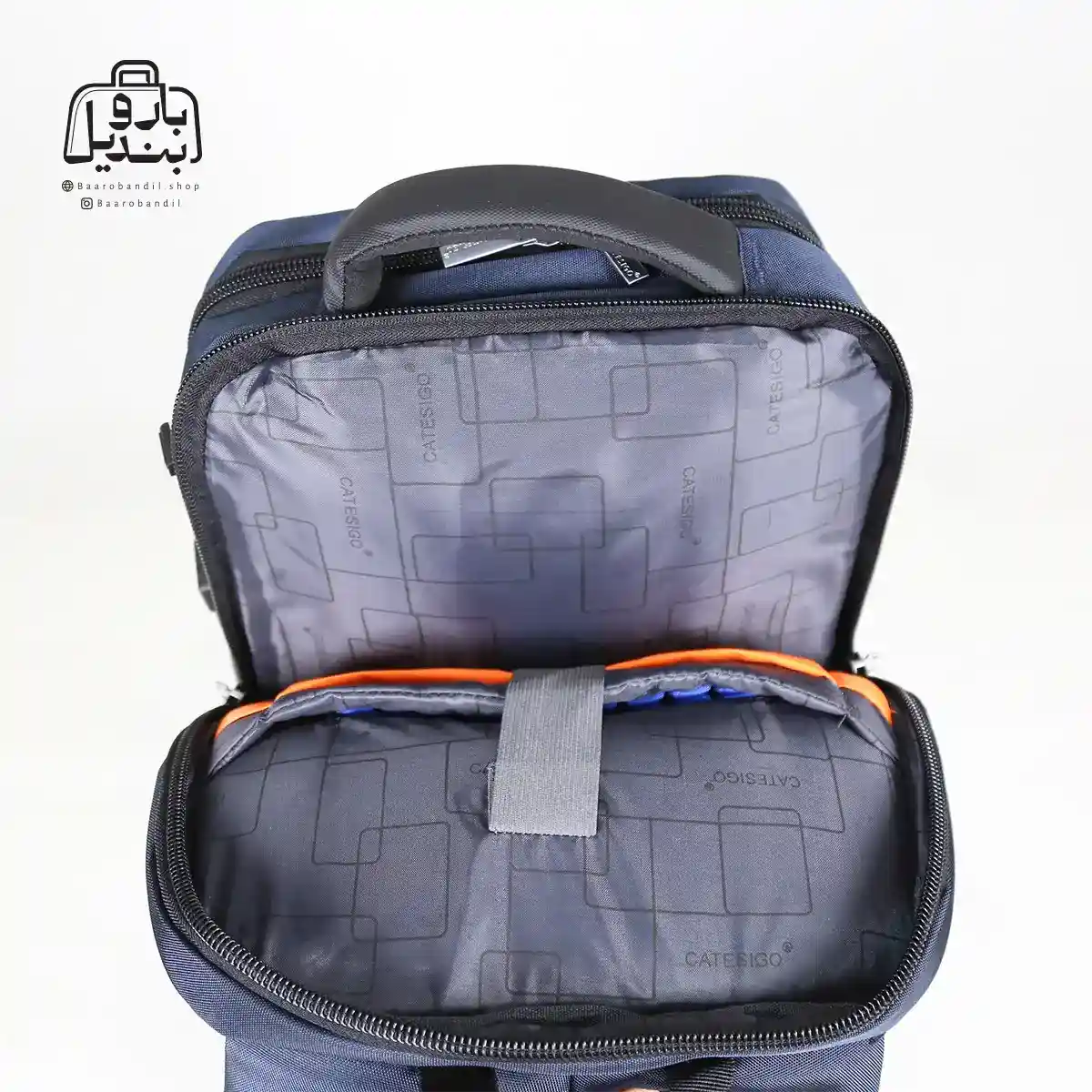 تقسیمبندیهای داخلی | فضای اصلی , دارای تفکیکهای داخلی مناسب , دارای زیپ و جیب داخلی , محفظهٔ کفش , جای لپتاپ , جای تبلت , جای قمقمه |