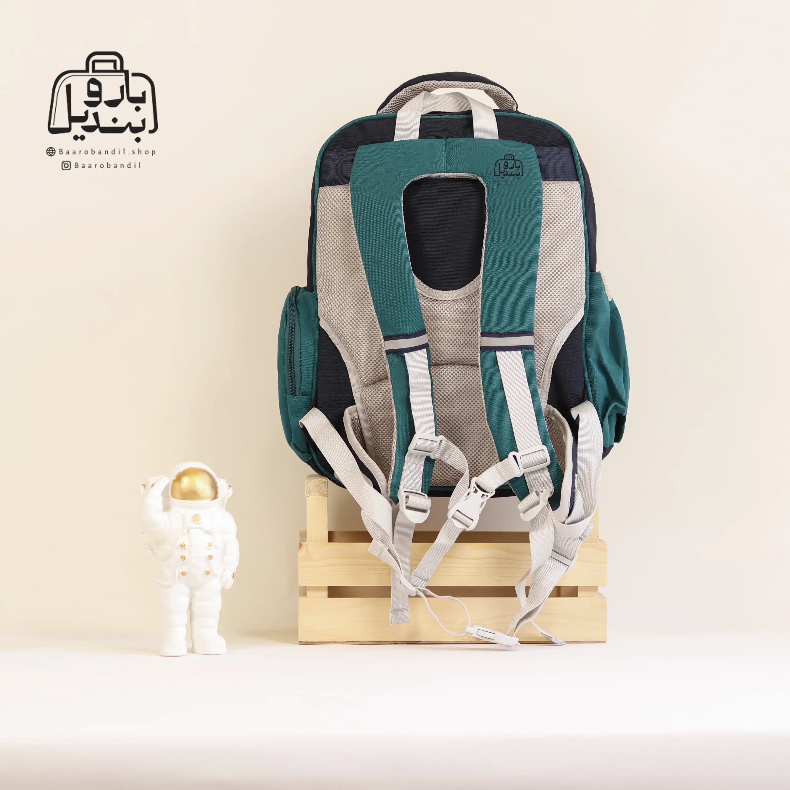 تقسیمبندیهای داخلی | فضای اصلی , دارای تفکیکهای داخلی مناسب , دارای زیپ و جیب داخلی , جای تبلت , جای قمقمه |