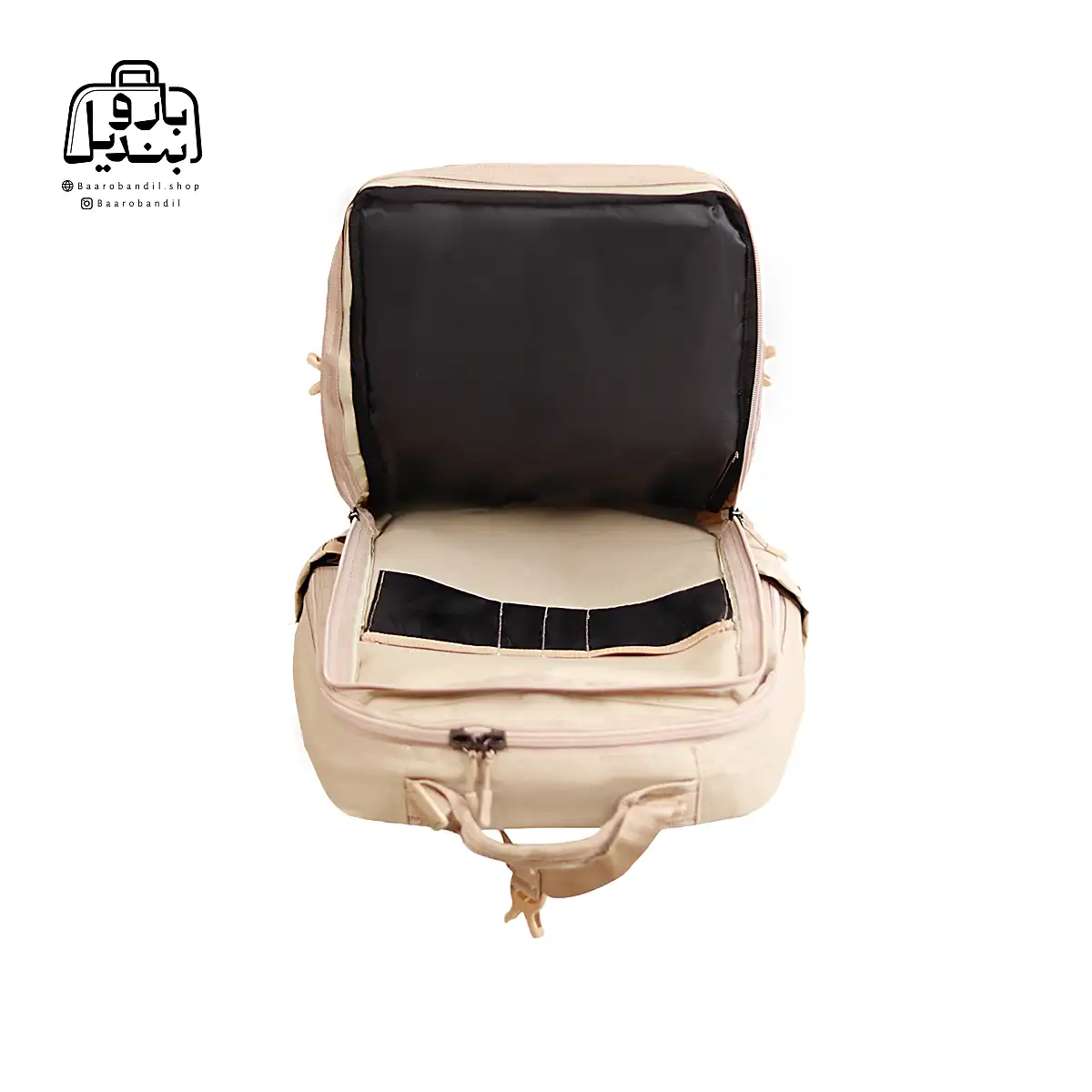 تقسیمبندیهای داخلی | فضای اصلی , دارای تفکیکهای داخلی مناسب , دارای زیپ و جیب داخلی , جای لپتاپ , جای قمقمه |