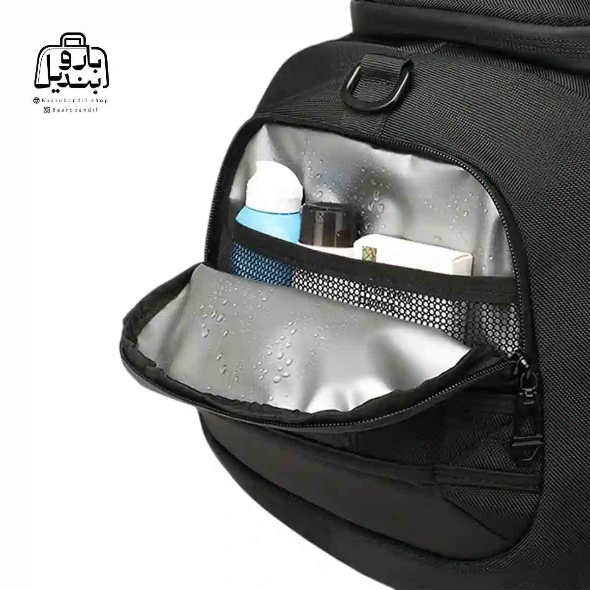 تقسیمبندیهای داخلی | فضای اصلی , دارای تفکیکهای داخلی مناسب , دارای زیپ و جیب داخلی , تقسیمبندی زیپدار توریشکل , محفظهٔ لباس خیس , محفظهٔ کفش |