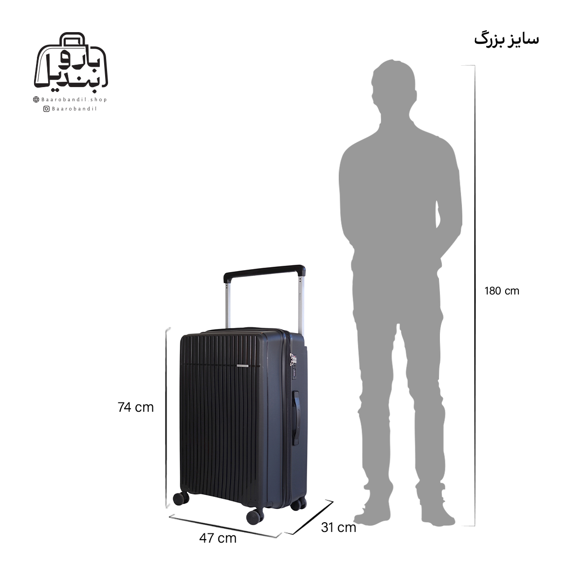 | طول خارجی چمدان سایز بزرگ | ۴۷ سانتیمتر |