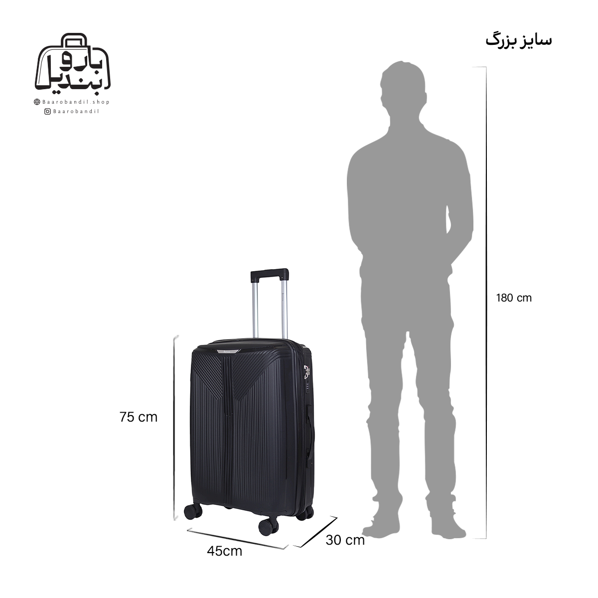 این چمدان سایز بزرگ با ظرفیت ۷ تا ۱۰ کیلوگرم مناسب سفرهای طولانی و حمل وسایل متعدد است.