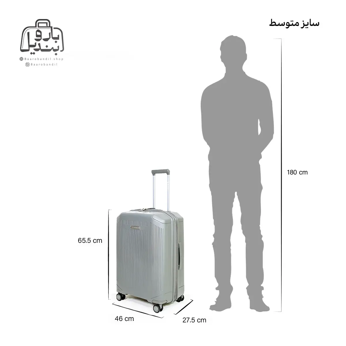 ارتفاع خارجی چمدان سایز متوسط | ۶۵.۵ سانتیمتر |