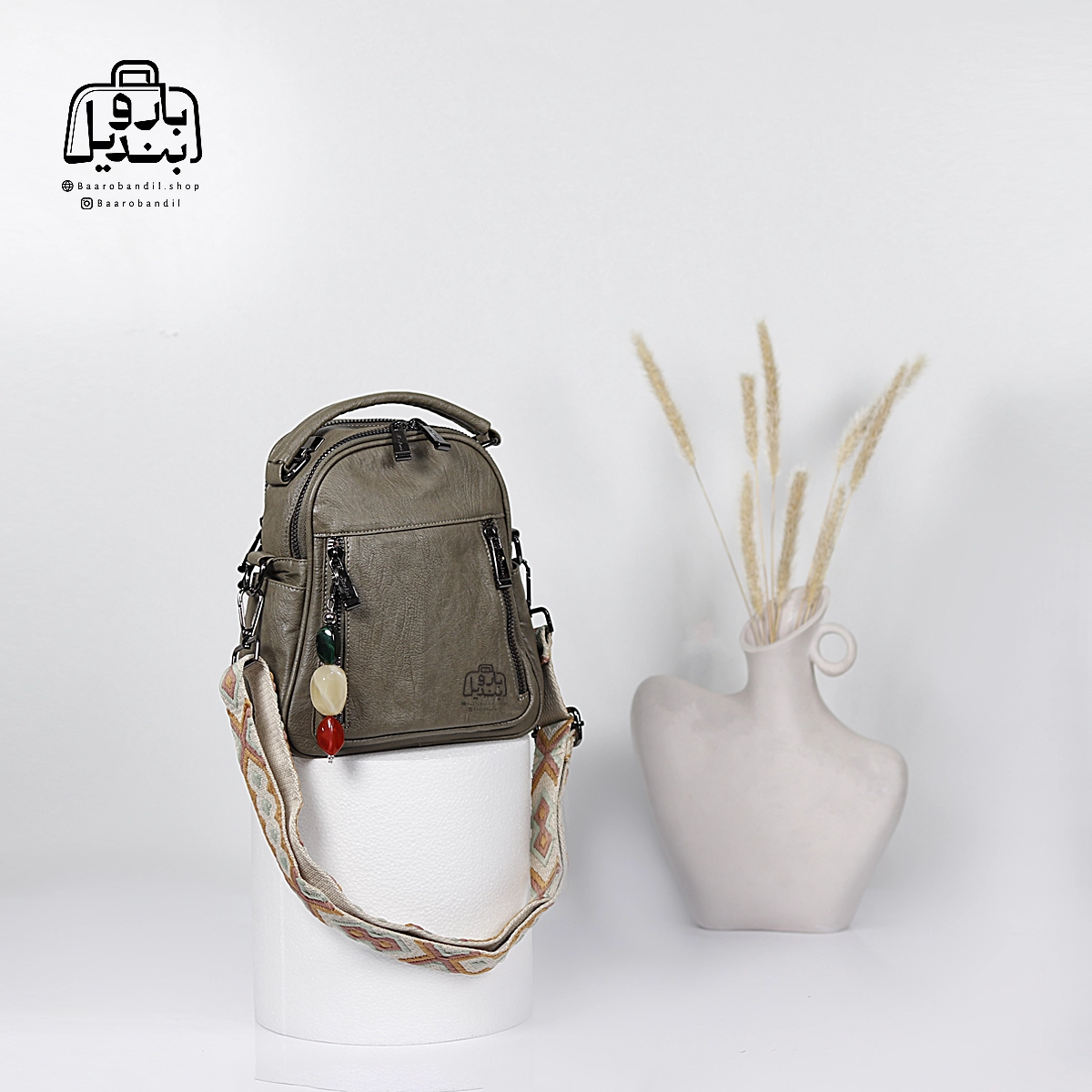 - تعداد بند: دو بند کوله پشتی چرمی و یک بند بلند دوشی کنفی