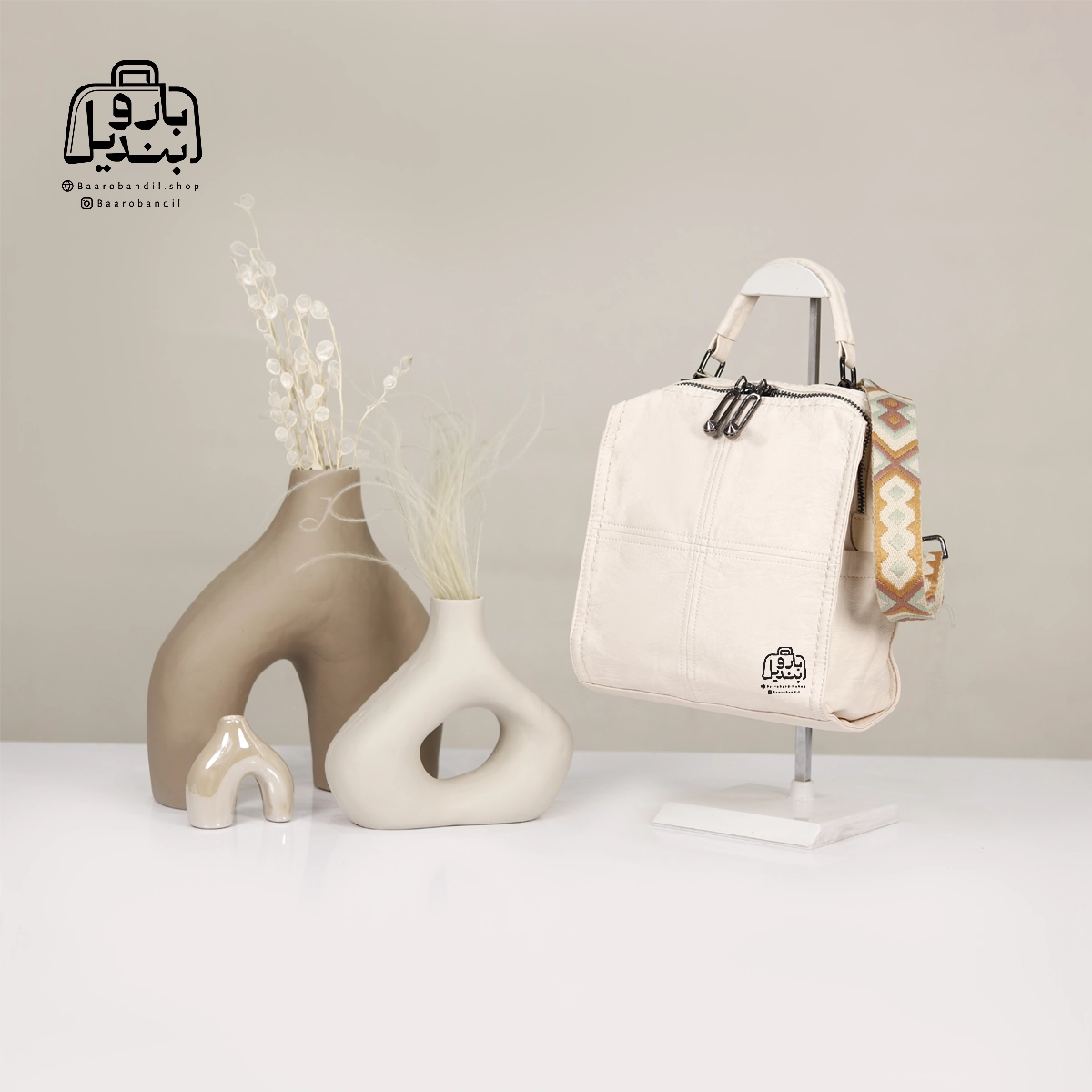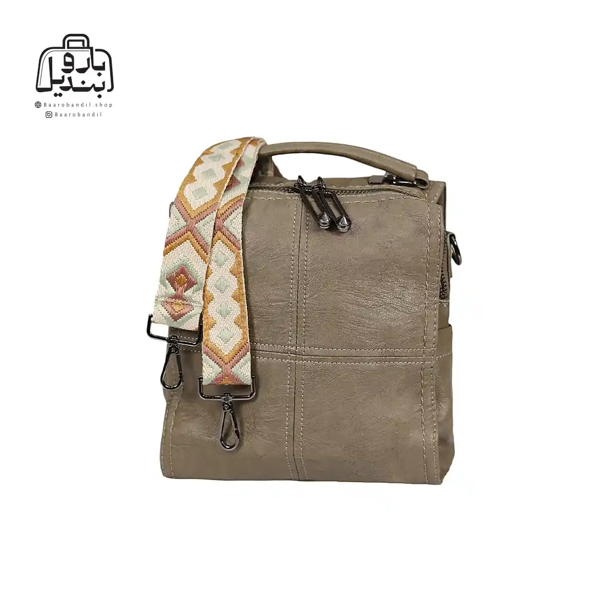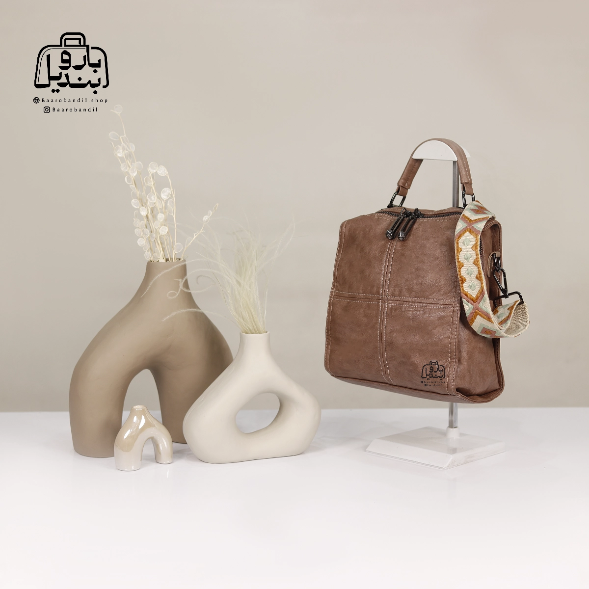 • تعداد بند: دو بند کوله پشتی چرمی و یک بند بلند دوشی کنفی
